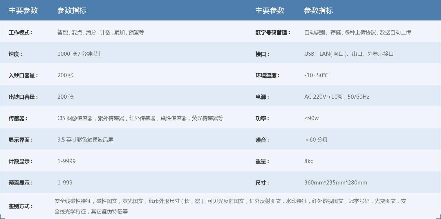 獨特的反向傳動系統,結構化檢測盒設計,走鈔更順暢,精巧的通道開合方式,易于維護。 該產品系自主知識產權,并獲得相關專利(專利號:ZL2015 2 0827685.7)及軟件著作權(軟著登字第0087481號、2240387號)