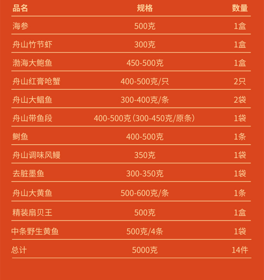 • 品名:舟山甄選海鮮