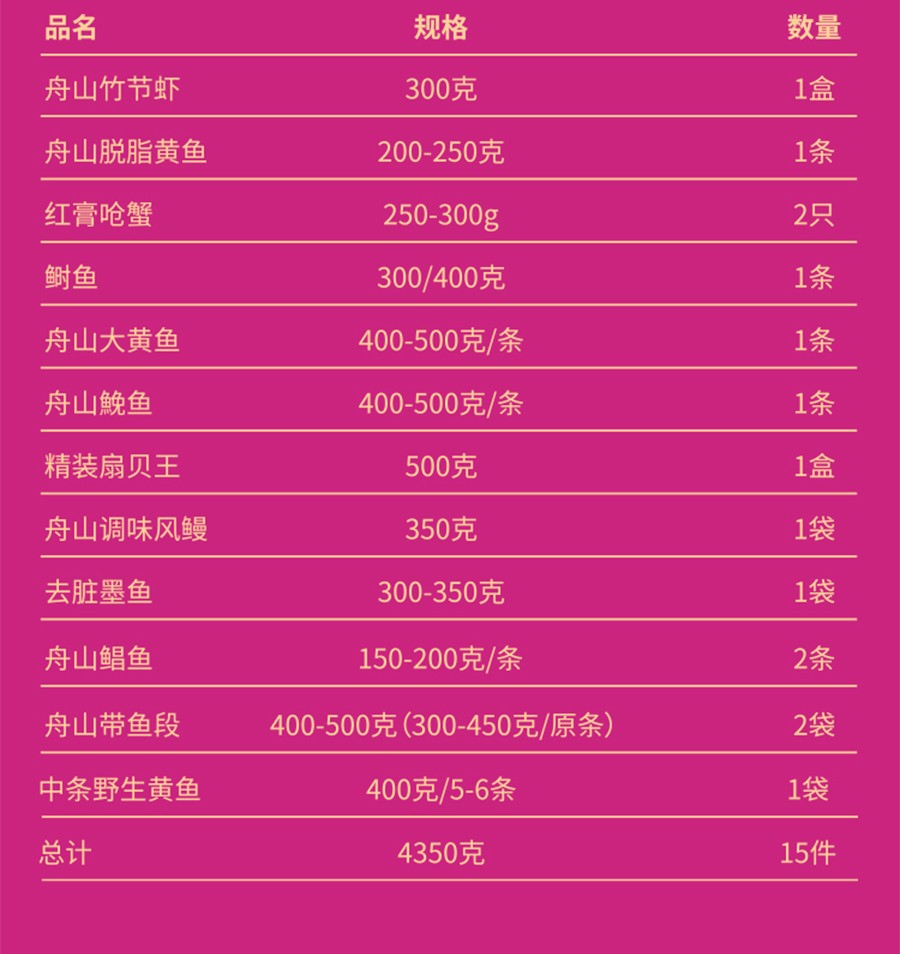 • 品名:舟山甄選海鮮